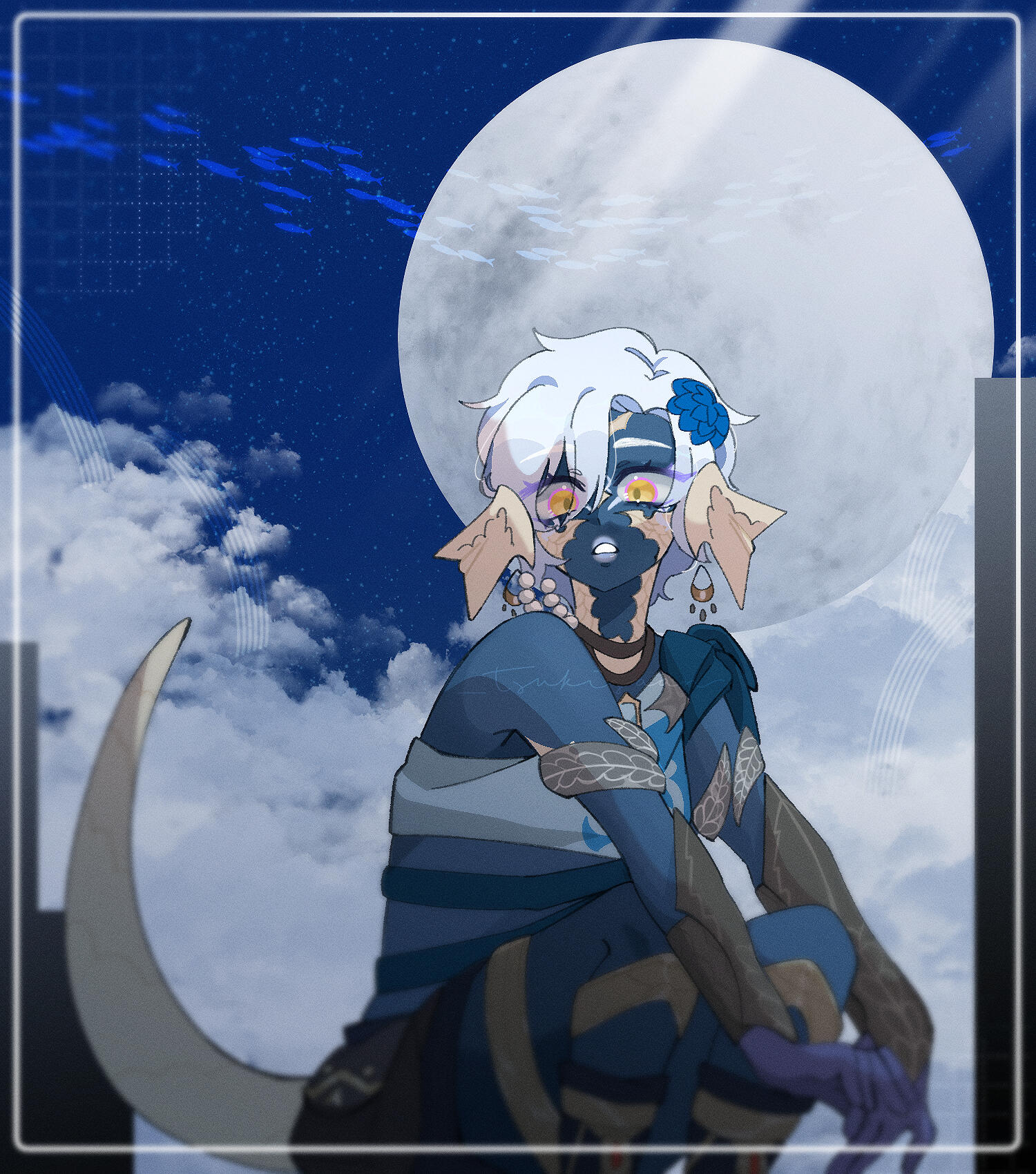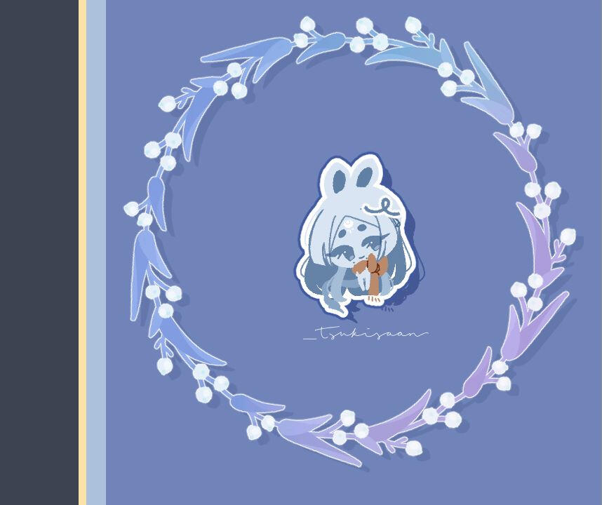 Hello! I go by Tsuki. I mainly work on character design ( adopt characters ) and character illustrations. While I do work with the two mentioned prior, I also work with graphic design such as making convention/venue catalogs, stream overlays and icons. I also design carrds for other artists as well as help manage artists' schedules and help advise them with social media.
