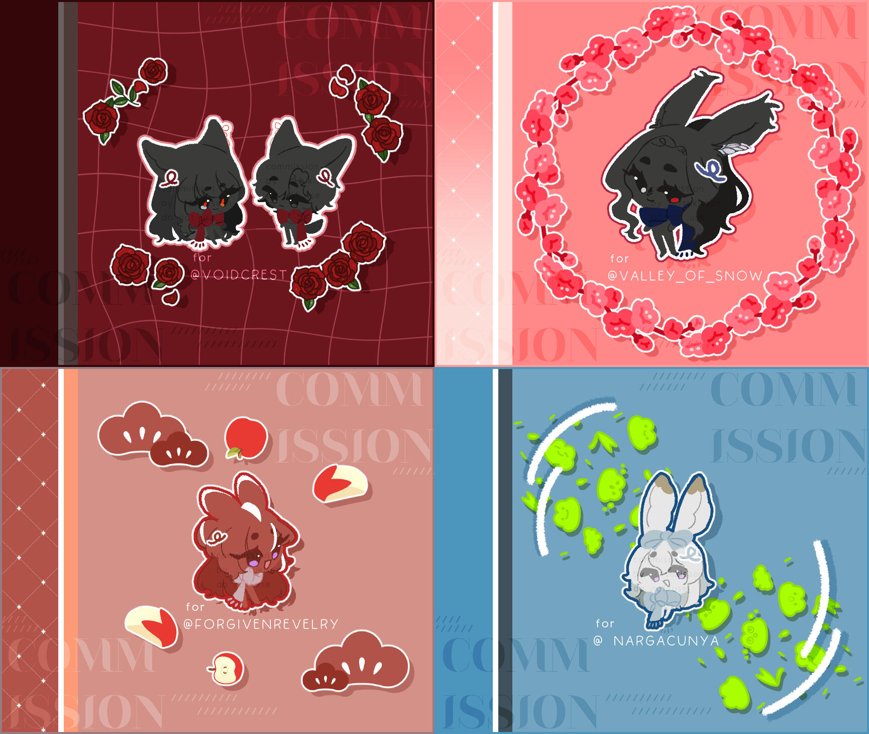 these are all skeb like for those that don't know what they want, though if you do know what you'd like, feel free to request it!